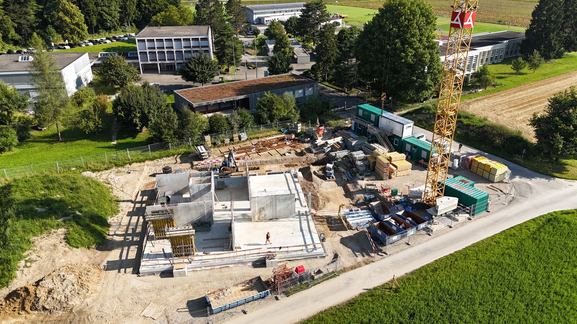 Der Spatenstich für das neue Schulhaus ist erfolgt. Im Neubau werden sechs neue Klassenzimmer und Gruppenräume entstehen um den gewachsenen Schulraumbedarf abzudecken. Die Konstruktion ist in Massivbauweise geplant. Die Gesamtkosten belaufen sich auf rund 7 Mio. CHF.